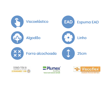 O aconchego dos 4cm de viscoelástico e a suavidade do tecido com algodão e linho, elevam a ergonomia deste colchão e garantem um descanso revigorante.