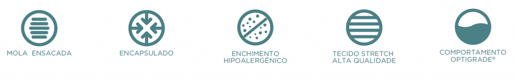 Colchão de conforto estável, graças às molas ensacadas que se adaptam perfeitamente ao corpo. Enchimento composto por fibras hipoalergénicas para um descanso mais higiénico. Tecido Stretch de alta qualidade e comportamento Optigrade® para regular a temperatura. O acolchoado contínuo proporciona o máximo conforto.