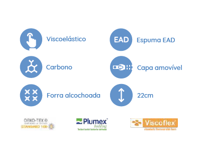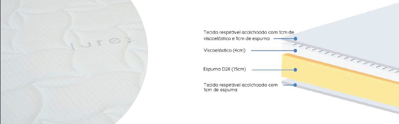 No núcleo a espuma de alta densidade EAD associada aos 4cm de viscoelástico, garantem uma sustentação confortável e um apoio homogéneo, permitindo uma maior adaptabilidade ao colchão durante o sono.