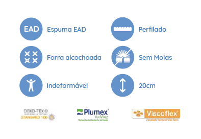 Tecido exterior em malha strech 280gr/m2 , extraelástico e um toque suave e agradável, está acolchoado com uma combinação de perfilado e fibras hipoalergénicas que conferem 3.5cm de conforto e menor pressão sobre o corpo durante o sono. O perfilado garante ainda uma maior frescura e circulação de ar o que garante uma maior frescura e circulação de ar, evitando assim a proliferação de bactérias. A espuma eterline com 15cm de altura garante uma grande durabilidade e suporte através da distribuição uniforme do peso do corpo durante o sono.